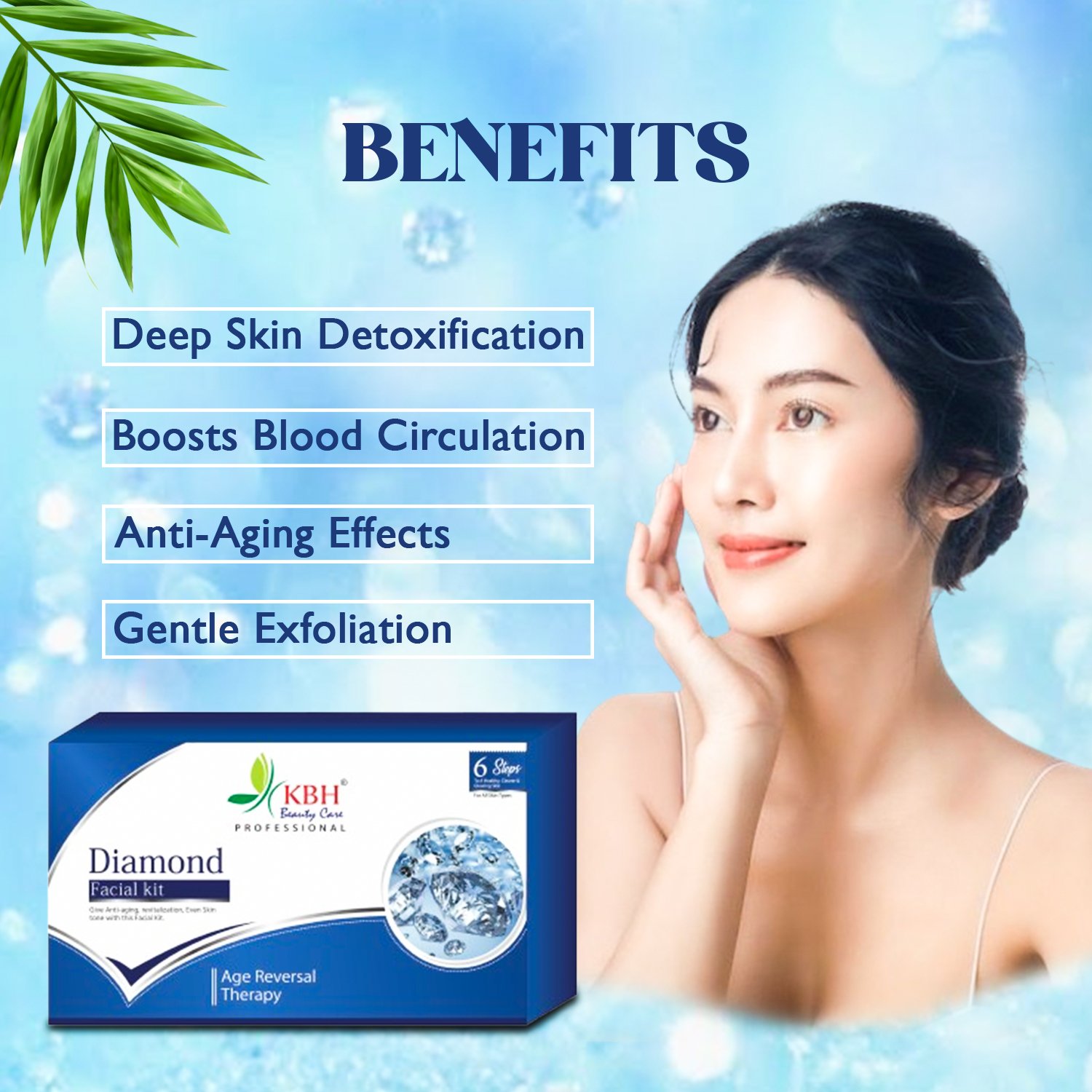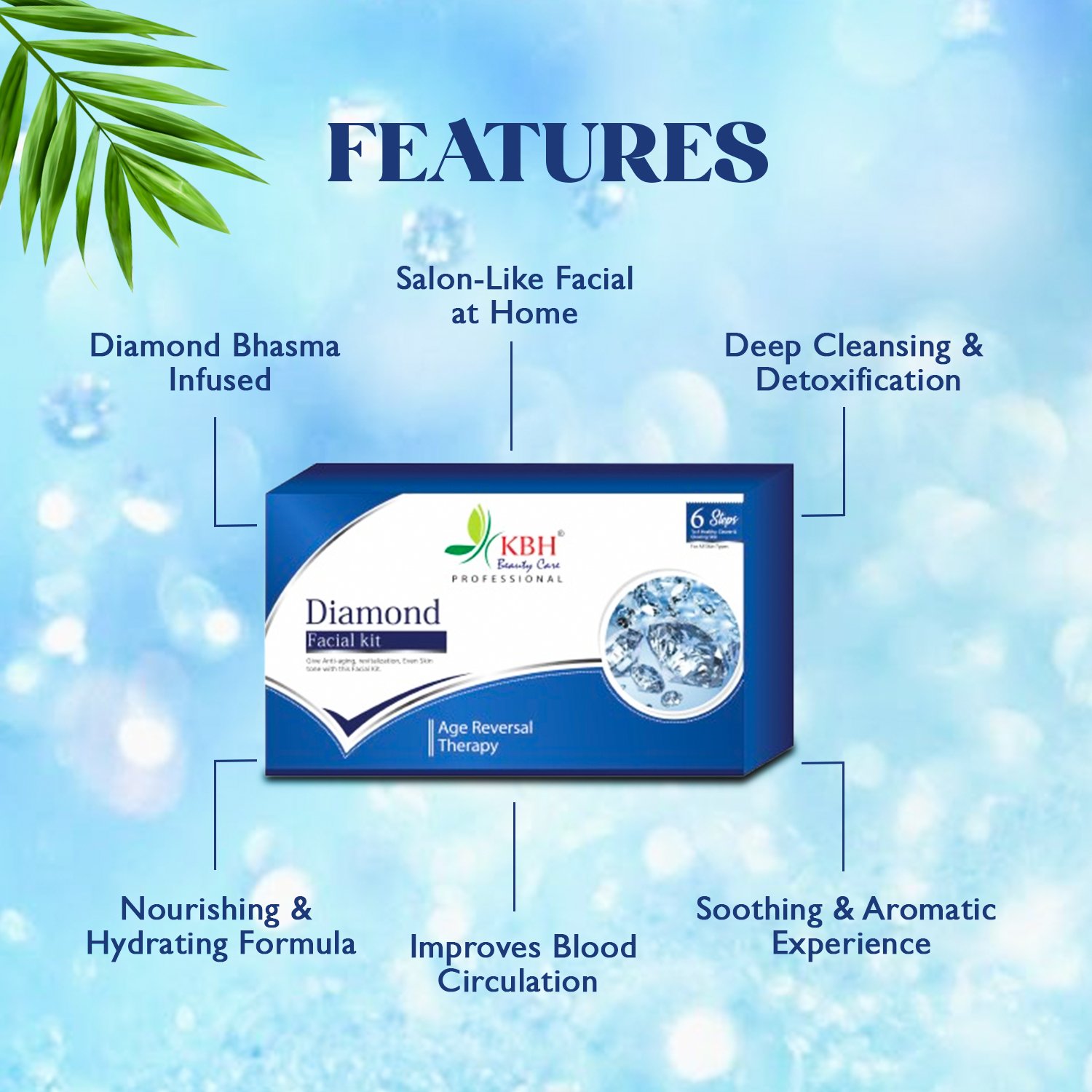 Get a luxurious glow with our Diamond Facial Kit — infused with diamond dust to purify, polish, and rejuvenate your skin for a radiant, youthful look.